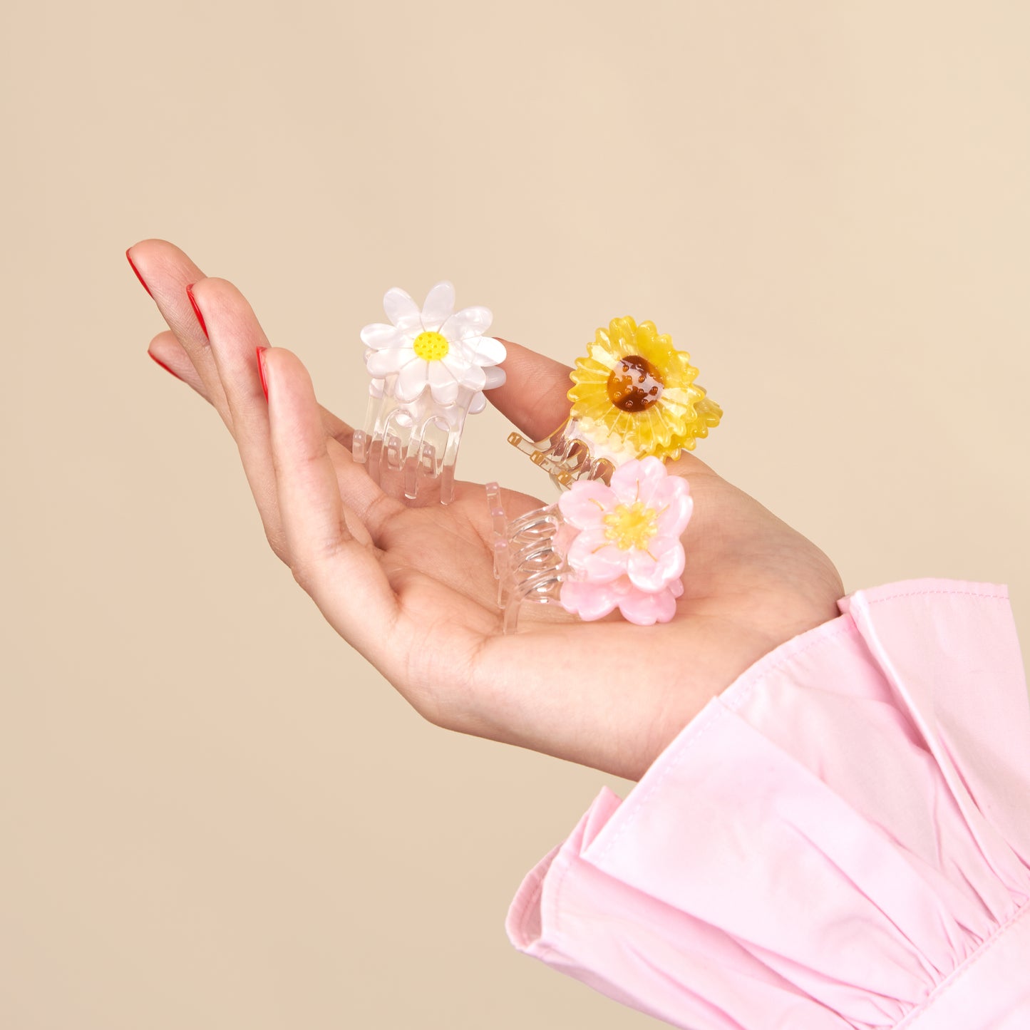 A baby sunflower to add colors and happiness to our hairstyles! We love this pretty yellow flower who, just like us, likes to bath in the sun. A mini hair claw that can grab your hair just like any other big one thanks to the big claws.