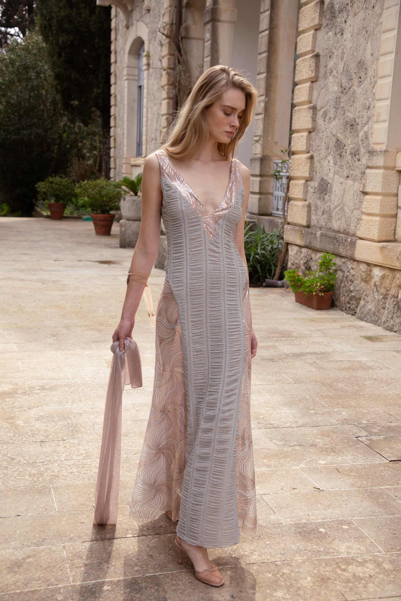 Side Semi-Sheer Sequined Tulle