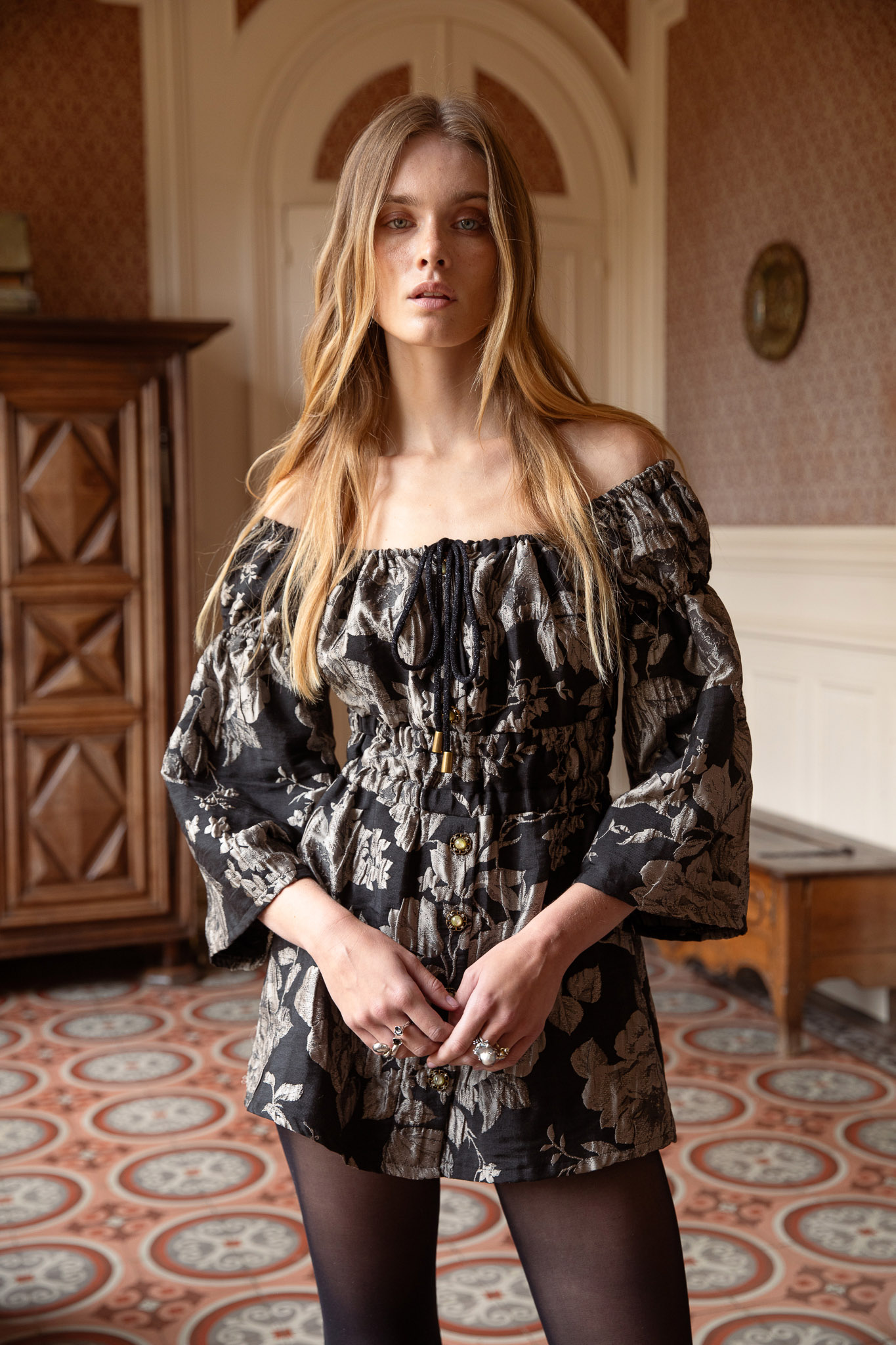 Off-the-Shoulder Neckline with Adjustable Drawstring
